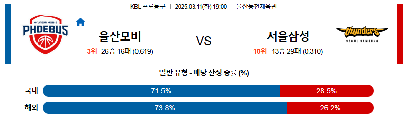울산현대모비스 대 서울삼성 KBL 03월11일 맞대결 생중계, 스포츠중계, 스포츠분석