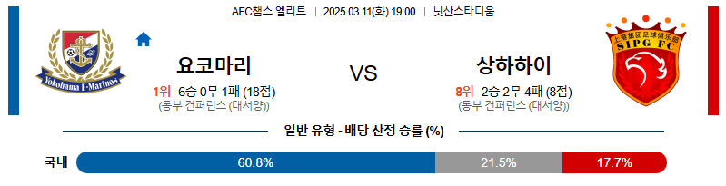 요코하마마리노스 대 상하이하이강 AFC챔피언스리그 03월11일 맞대결 생중계, 스포츠중계, 스포츠분석