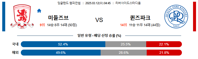 미들즈브러 대 QPR 잉글랜드챔피언쉽 03월12일 맞대결 생중계, 스포츠중계, 스포츠분석