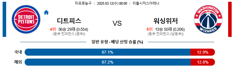 디트로이트 대 워싱턴 NBA 03월12일 맞대결 생중계, 스포츠중계, 스포츠분석