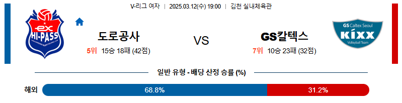 도로공사 대 GS칼텍스 V리그(여) 03월12일 맞대결 생중계, 스포츠중계, 스포츠분석