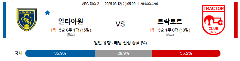 알타아원 대 트락토르 AFC챔피언스리그 03월12일 맞대결 생중계, 스포츠중계, 스포츠분석