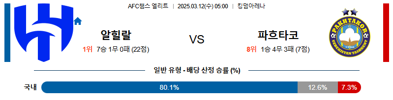알힐랄 대 파흐타코르 AFC챔피언스리그 03월12일 맞대결 생중계, 스포츠중계, 스포츠분석