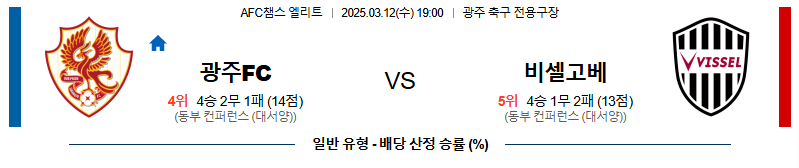 광주FC 대 비셀고베 AFC챔피언스리그 03월12일 맞대결 생중계, 스포츠중계, 스포츠분석