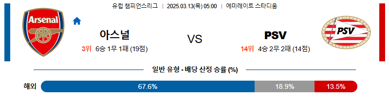 아스널 대 PSV UEFA챔피언스리그 03월13일 맞대결 생중계, 스포츠중계, 스포츠분석