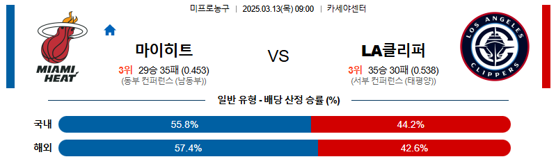 마이애미 대 LA클리퍼스 NBA 03월13일 맞대결 생중계, 스포츠중계, 스포츠분석