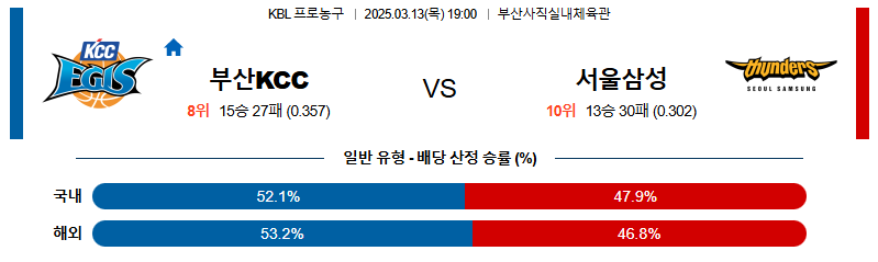 부산KCC 대 서울삼성 KBL 03월13일 맞대결 생중계, 스포츠중계, 스포츠분석