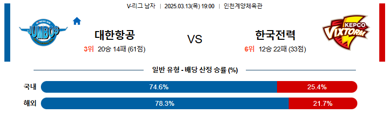 대한항공 대 한국전력 V리그 03월13일 맞대결 생중계, 스포츠중계, 스포츠분석