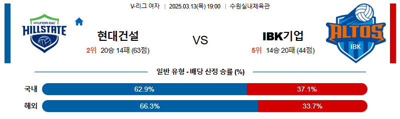 현대건설 대 IBK기업은행 V리그(여) 03월13일 맞대결 생중계, 스포츠중계, 스포츠분석
