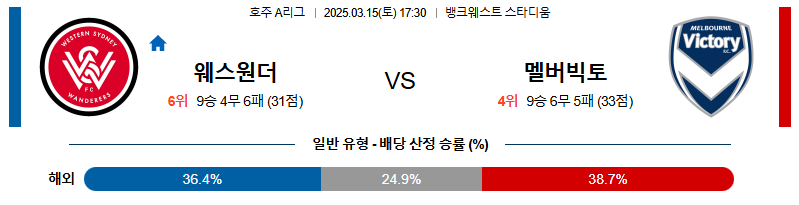웨스턴시드니 대 멜버른빅토리 호주A리그 03월15일 맞대결 생중계, 스포츠중계, 스포츠분석