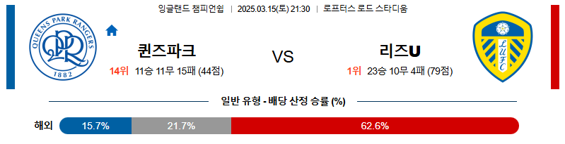 QPR 대 리즈유나이티드 잉글랜드챔피언쉽 03월15일 맞대결 생중계, 스포츠중계, 스포츠분석