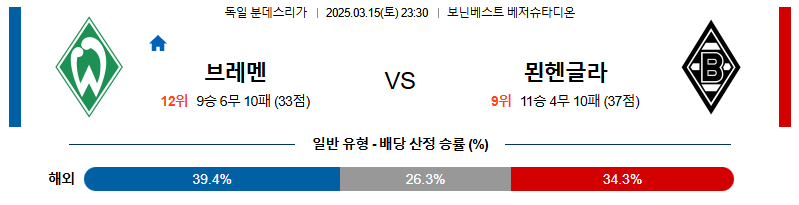 베르더브레멘 대 묀헨글라트바흐 분데스리가 03월15일 맞대결 생중계, 스포츠중계, 스포츠분석