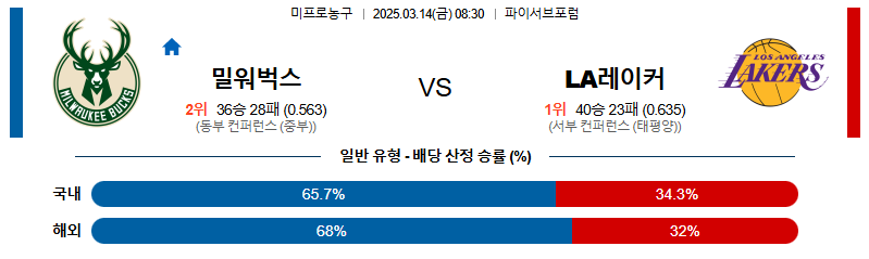 밀워키 대 LA레이커스 NBA 03월14일 맞대결 생중계, 스포츠중계, 스포츠분석
