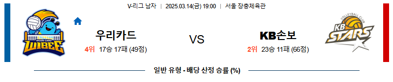 우리카드 대 KB손해보험 V리그 03월14일 맞대결 생중계, 스포츠중계, 스포츠분석