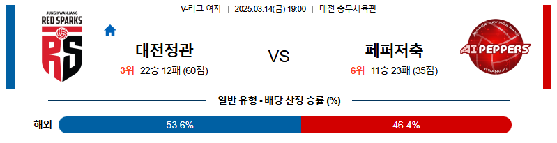 정관장 대 페퍼저축은행 V리그(여) 03월14일 맞대결 생중계, 스포츠중계, 스포츠분석