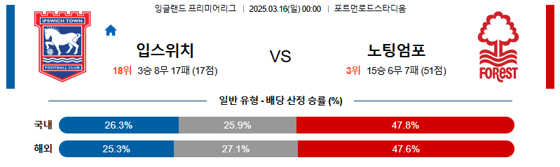 입스위치 대 노팅엄 프리미어리그 03월16일 맞대결 생중계, 스포츠중계, 스포츠분석