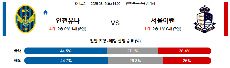 인천 대 서울이랜드 K리그2 03월15일 맞대결 생중계, 스포츠중계, 스포츠분석