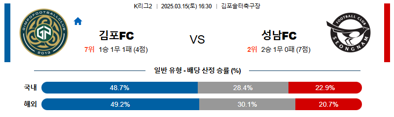 김포FC 대 성남FC K리그2 03월15일 맞대결 생중계, 스포츠중계, 스포츠분석