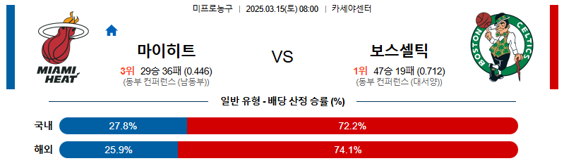 마이애미 대 보스턴 NBA 03월15일 맞대결 생중계, 스포츠중계, 스포츠분석
