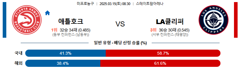 애틀란타 대 LA클리퍼스 NBA 03월15일 맞대결 생중계, 스포츠중계, 스포츠분석