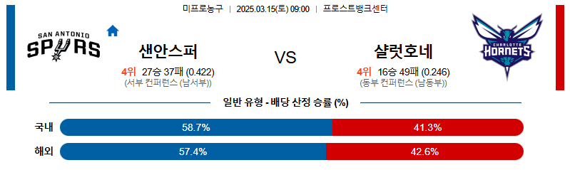 샌안토니오 대 샬럿 NBA 03월15일 맞대결 생중계, 스포츠중계, 스포츠분석