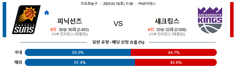 피닉스 대 새크라멘토 NBA 03월15일 맞대결 생중계, 스포츠중계, 스포츠분석