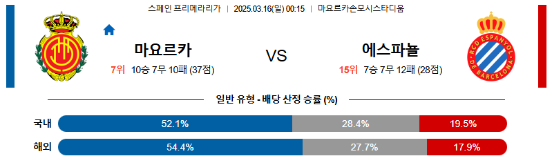 마요르카 대 에스파뇰 라리가 03월16일 맞대결 생중계, 스포츠중계, 스포츠분석