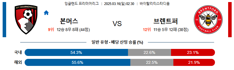 본머스 대 브렌트퍼드 프리미어리그 03월16일 맞대결 생중계, 스포츠중계, 스포츠분석