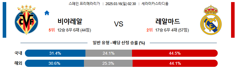 비야레알 대 레알마드리드 라리가 03월16일 맞대결 생중계, 스포츠중계, 스포츠분석