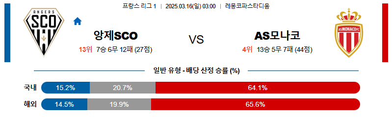 앙제 대 모나코 리그앙 03월16일 맞대결 생중계, 스포츠중계, 스포츠분석