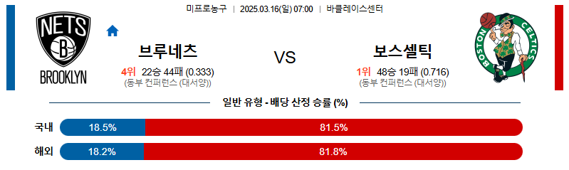 브루클린 대 보스턴 NBA 03월16일 맞대결 생중계, 스포츠중계, 스포츠분석