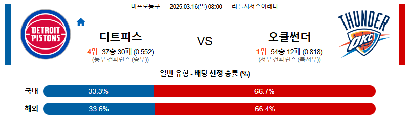 디트로이트 대 오클라호마 NBA 03월16일 맞대결 생중계, 스포츠중계, 스포츠분석