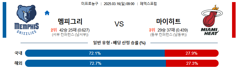 멤피스 대 마이애미 NBA 03월16일 맞대결 생중계, 스포츠중계, 스포츠분석