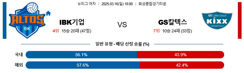 IBK기업은행 대 GS칼텍스 V리그(여) 03월16일 맞대결 생중계, 스포츠중계, 스포츠분석
