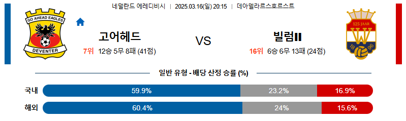고어헤드 대 빌럼 에레디비지에 03월16일 맞대결 생중계, 스포츠중계, 스포츠분석