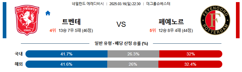 트벤테 대 페예노르트 에레디비지에 03월16일 맞대결 생중계, 스포츠중계, 스포츠분석