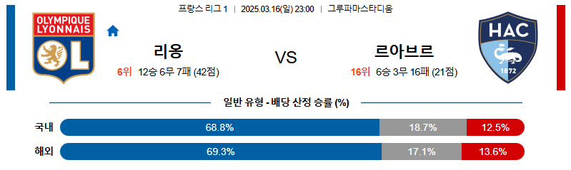 리옹 대 르아브르 리그앙 03월16일 맞대결 생중계, 스포츠중계, 스포츠분석