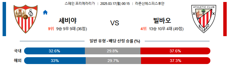 세비야 대 아틀레틱빌바오 라리가 03월17일 맞대결 생중계, 스포츠중계, 스포츠분석