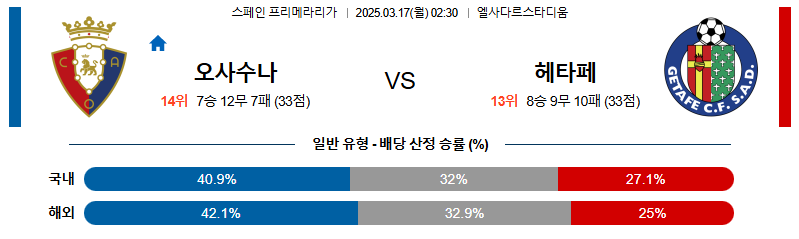 오사수나 대 헤타페 라리가 03월17일 맞대결 생중계, 스포츠중계, 스포츠분석