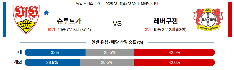 슈투트가르트 대 레버쿠젠 분데스리가 03월17일 맞대결 생중계, 스포츠중계, 스포츠분석