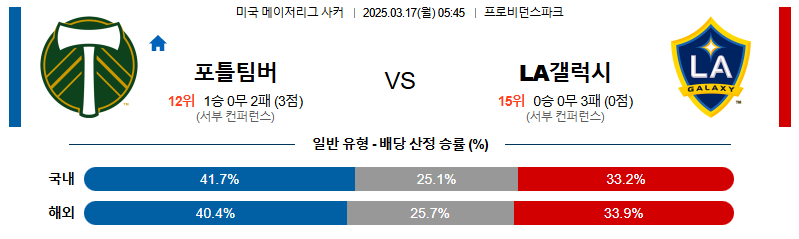 포틀랜드 대 LA갤럭시 메이저리그사커 03월17일 맞대결 생중계, 스포츠중계, 스포츠분석