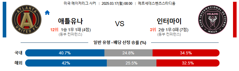 애틀랜타 대 인터마이애미 메이저리그사커 03월17일 맞대결 생중계, 스포츠중계, 스포츠분석