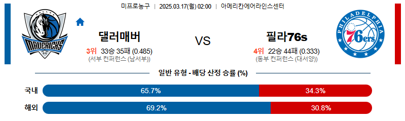 댈러스 대 필라델피아 NBA 03월17일 맞대결 생중계, 스포츠중계, 스포츠분석
