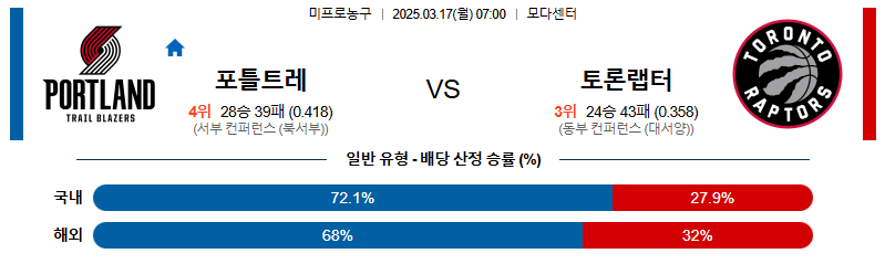 포틀랜드 대 토론토 NBA 03월17일 맞대결 생중계, 스포츠중계, 스포츠분석