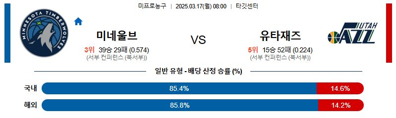 미네소타 대 유타 NBA 03월17일 맞대결 생중계, 스포츠중계, 스포츠분석