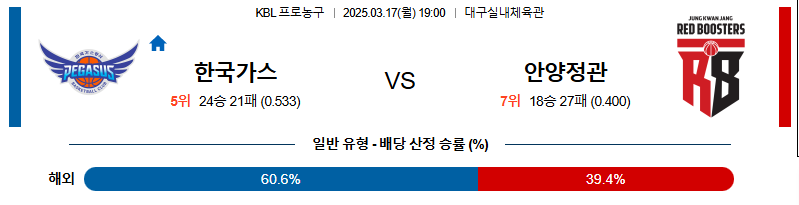 대구한국가스 대 안양정관장 KBL 03월17일 맞대결 생중계, 스포츠중계, 스포츠분석