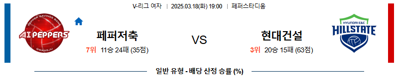 페퍼저축은행 대 현대건설 V리그(여) 03월18일 맞대결 생중계, 스포츠중계, 스포츠분석