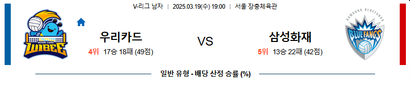 우리카드 대 삼성화재 V리그 03월19일 맞대결 생중계, 스포츠중계, 스포츠분석