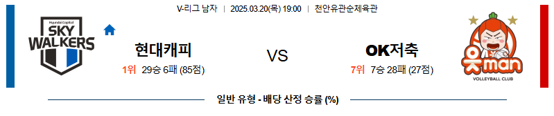 현대캐피탈 대 OK저축은행 V리그 03월20일 맞대결 생중계, 스포츠중계, 스포츠분석