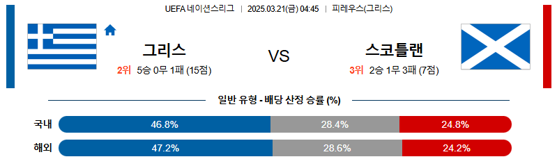 그리스 대 스코틀랜드 UEFA네이션스리그 03월21일 맞대결 생중계, 스포츠중계, 스포츠분석